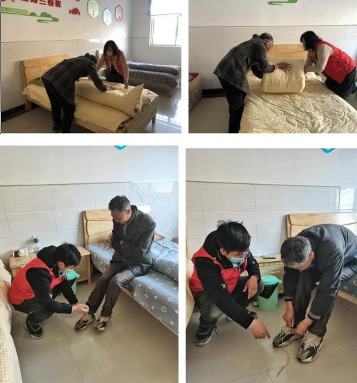活動正式開始,殘疾人在河北社區(qū)殘疾人之家工作人員的帶領(lǐng)下,來到殘疾人之家日間照料活動室,開始學(xué)習(xí)套被套、疊被子、系鞋帶等日常生活技能。“白被里,朝上邊,先疊長邊對中間;被頭被腳向中折,對折疊齊放床邊。”在朗朗上口的疊被子口訣中,工作人員事無巨細(xì)的教導(dǎo)著殘疾人疊被子,并耐心手把手的將每一步驟都教給大家。授人以魚不如授人以漁,是中華民族偉大的精神方針。給殘疾人做家務(wù),不如傳授殘疾人做家務(wù)的方法,促使其在學(xué)習(xí)中成長。