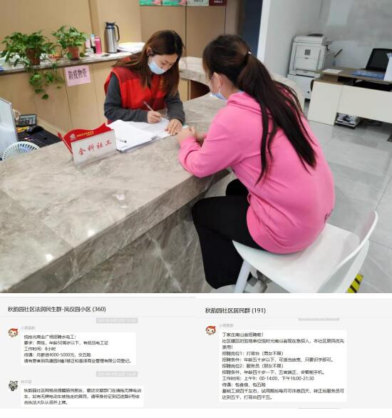 掌上云社區(qū)微信群是社區(qū)與居民溝通交流的平臺,也是社區(qū)鏈接群眾和屬地單位的橋梁和紐帶,近期,秋韻園社區(qū)在企業(yè)走訪中得知轄區(qū)內(nèi)的重點商業(yè)悅拾光商業(yè)廣場及周邊的部分商戶需要招工,尋求社區(qū)的幫助,而在平時的居民接待中,也有部分居民表示想在附近找工作,社區(qū)因勢利導(dǎo),針對雙方需求,利用掌上云社區(qū)在轄區(qū)內(nèi)的各個社區(qū)群內(nèi)開啟線上招聘,引導(dǎo)居民線下應(yīng)聘,幫助企業(yè)盡快招工,居民加速就業(yè)。