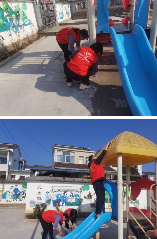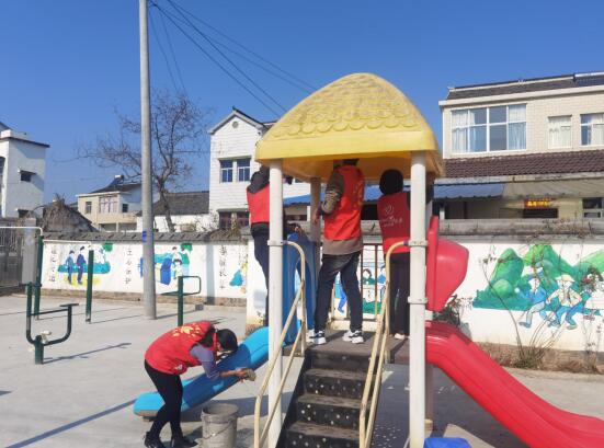 由于村莊兒童娛樂設(shè)施的使用率極高,是孩子們休閑娛樂健身的主要場所,經(jīng)過長時(shí)間的使用,廣場上的這些設(shè)施表面積累了很多灰塵。