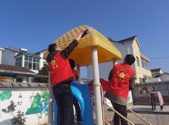 民主村工會(huì)志愿者讓村莊兒童娛樂設(shè)施煥新顏