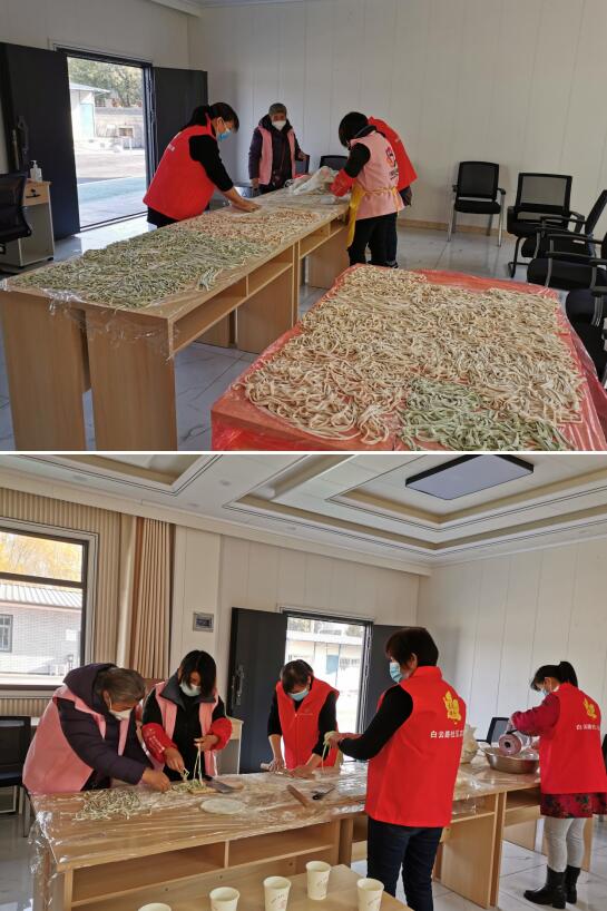 志愿者們與殘障老人忙碌了一上午,終于完成了五十份手搟面的制作和包裝,在冬日的暖陽里志愿者們帶著手搟面和防疫小禮包在白云路社區(qū)的小巷里穿梭,為白云路社區(qū)殘障老人們送上了溫暖和冬日里的祝福。此次活動得到了轄區(qū)居民的一致好評,既為社區(qū)營