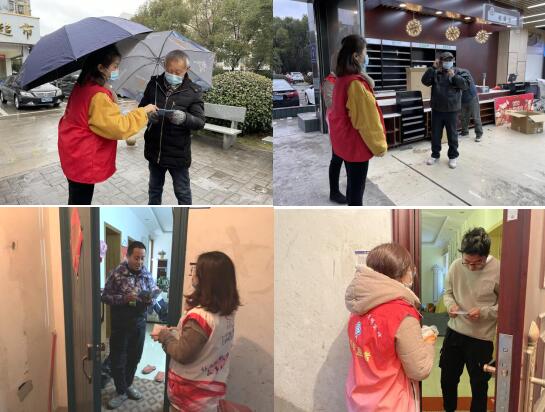 他們不僅在小區(qū)廣場上宣傳,同時(shí)也走到小區(qū)內(nèi)超市,走到樓棟里,上門給居民發(fā)放防疫宣傳手冊,倡導(dǎo)居民遵守疫情防控要求,做到勤洗手、常通風(fēng)、戴口罩、不聚集。