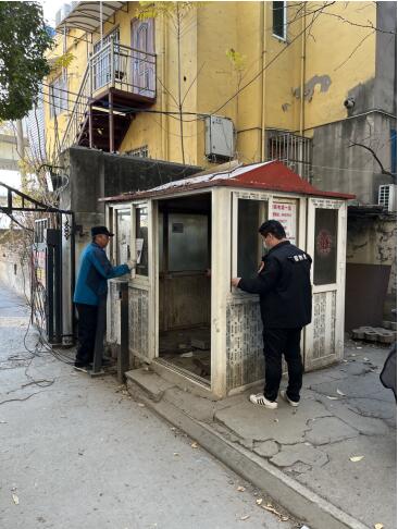 在天悅花園1號網(wǎng)格,小區(qū)的南門附近,一處已棄用的活動板房引起了巡查人員的注意。原本此處是作為小區(qū)保安亭,用于進(jìn)出人員登記,但隨著小區(qū)疫情防控工作的常態(tài)化開展及小區(qū)的整體環(huán)境改造,此處活動板房不再有保安駐守,便已喪失原有的功能??紤]到一些線路的老化,周邊是非機動車集中充電區(qū)域以及板房本身材質(zhì)等原因,該處存在一定的消防安全隱患。巡查人員將此情況上報到社區(qū),經(jīng)過研究討論,社區(qū)決定聯(lián)合棲霞建設(shè)物業(yè)對此進(jìn)行了拆除。