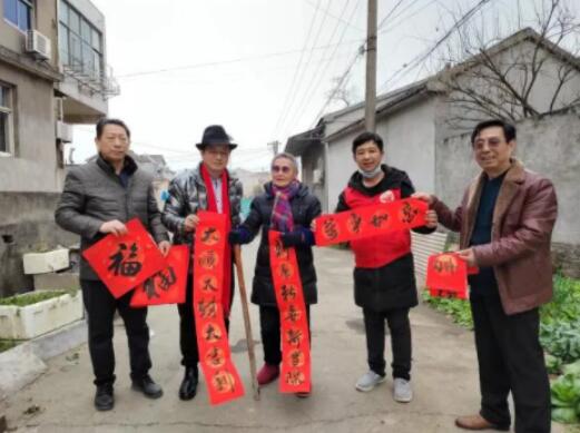 歲末年終,流墨堂文化有限公司孫建寧總經(jīng)理組織省市書畫家陳百園、趙陽、惲安中、蘇青松、張學(xué)義、劉京生、黃海豹、王黎、姜永進等走進湖熟君子殘疾之家開展“送福送春聯(lián) 墨香暖人心”活動,并為當(dāng)?shù)貧堈?、孤寡老人,送上新年祝?!?/p>