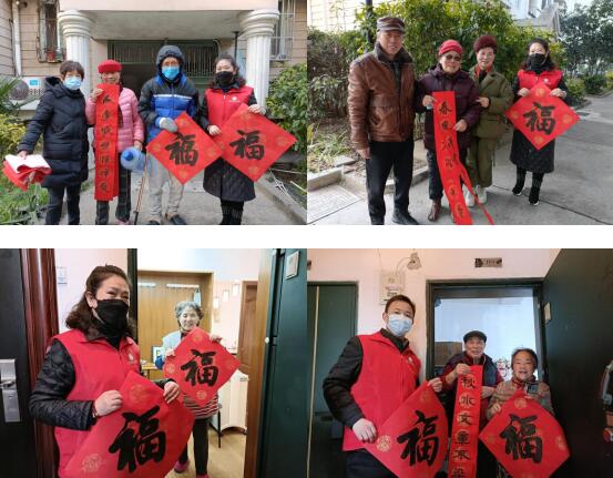 待作品風(fēng)干,身穿鮮艷紅馬甲的志愿者把“福”字和“天地福順家添財(cái),平安如意人福多”“春日祥和幸福年,彩燈高照平安門”等各式各樣的春聯(lián)送到社區(qū)困難群體的手上。殘疾人劉師傅看著來(lái)自鄰居們的祝福,喜笑顏開,不住地贊嘆:“年年都掛社區(qū)的春聯(lián),正想著,今年的就到了。”居民王奶奶,向鏡頭展示送給她的“福”字,對(duì)志愿者說:“小伙子,麻煩幫我掛上吧,這字紅彤彤的,看著心里暖。”