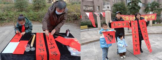 火紅精美的春聯(lián)紙、意蘊(yùn)吉祥的祝福語(yǔ)、酣暢流利的毛筆字……在寫(xiě)春聯(lián)環(huán)節(jié),志愿者帶領(lǐng)社區(qū)書(shū)法社團(tuán)的小書(shū)法家們,和藝術(shù)家爺爺一起揮毫潑墨,為高爾夫西花園社區(qū)的居民送上濃濃的新春祝福。