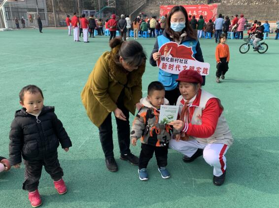 趁著舉辦迎新年文藝匯演的契機(jī),社區(qū)組織志愿者和網(wǎng)格員在文藝匯演間隙向一旁觀看節(jié)目的居民中傳授垃圾分類、投放、回收等知識(shí)。志愿者拿著配圖精美,介紹周祥的垃圾分類知識(shí)手冊在人群中穿梭,為人們普及知識(shí)。志愿者拉住運(yùn)動(dòng)場所多位居民,通過面對(duì)面的交流,深刻居民垃圾分類知識(shí),解答日常分類中遇到的實(shí)際難題?;顒?dòng)過半,蹲下和小朋友講解的網(wǎng)格員者正欲起身,一位老人上前拍了拍網(wǎng)格員,主動(dòng)索要了宣傳冊,“也給我一本,我們這代人沒有垃圾分類的習(xí)慣,但既然如今國家號(hào)召了,咱們思想行動(dòng)一定要跟上,不能拉國家后腿。”