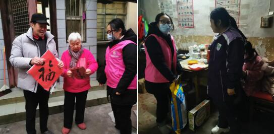 拿著寫(xiě)好的福字和對(duì)聯(lián),社區(qū)工會(huì)志愿者及婦聯(lián)志愿者來(lái)到了轄區(qū)內(nèi)的困境兒童及殘疾戶(hù)家中,把慰問(wèn)品送到了他們的手上,也將春聯(lián)與新春的祝福一并送上,希望他們?cè)谛碌囊荒昀锬軌蛏眢w健康、生活順心如意。