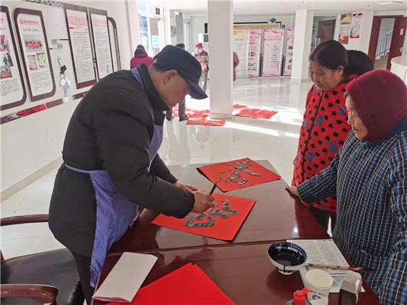 一個上午,書法家們手中的如椽之筆幾乎沒停歇,義務(wù)為居民書寫對聯(lián)和“福”字200余幅。
