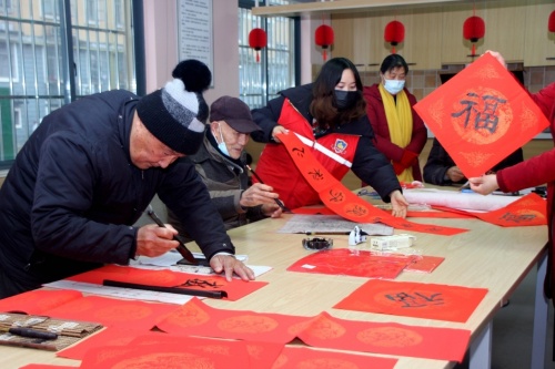 1月25日農(nóng)歷小年,琴聲悠揚,旋律悅耳的一曲鋼琴演奏音樂聲,從雙金社區(qū)新時代文明實踐中心傳來,活動室歡聲笑語,其樂融融。社區(qū)老年志愿者談笑風生,她們拿著春聯(lián)或者“福””字相互傳遞合影留念,帶著新年夢想留下一張張幸福的笑臉,充滿歡樂喜慶氣氛。
