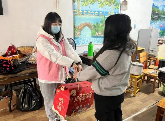 社區(qū)婦聯(lián)和計(jì)生協(xié)的工作人員早早的就為孩子們準(zhǔn)備了“把愛(ài)帶回家”新年零食大禮包,27日,臨近過(guò)年,天氣愈發(fā)的寒冷,工作人員剛剛敲響困難兒童家的大門(mén),就聽(tīng)到里面?zhèn)鱽?lái)了一陣急促的腳步聲,“新年快樂(lè),姐姐你們終于來(lái)了”一個(gè)小姑娘蹦蹦跳跳的來(lái)給大家開(kāi)門(mén)。工作人員親切的握住了孩子的手,詢(xún)問(wèn)她最近學(xué)習(xí)情況和家庭狀況,并叮囑她:“有困難可隨時(shí)和社區(qū)工作人員聯(lián)系,專(zhuān)注學(xué)習(xí),不要擔(dān)心經(jīng)濟(jì)問(wèn)題,社區(qū)永遠(yuǎn)會(huì)是你堅(jiān)強(qiáng)的后盾。”女孩感動(dòng)的點(diǎn)點(diǎn)頭,抓著工作人員的衣服不愿道別。