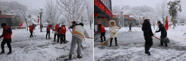 清晨,志愿服務隊的成員們就帶著鐵鍬、掃帚來到了龍尚村村委會門口和轄區(qū)內的主要道路上,有的揮舞著鐵鍬將積雪鏟除、堆積到路邊,有的使用掃帚將落雪清理掉……大家伙兒分工合作,干得熱火朝天,不僅掃清了主干道上的雪,各自然村的村內道路也是一掃而凈。