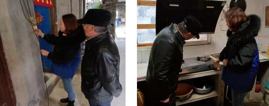 兩個(gè)小時(shí)很快過(guò)去了,張爺爺?shù)奈葑右脖淮驋叩母筛蓛魞?。此外,網(wǎng)格員徐教姣此刻也化身為消防志愿者,為張爺爺家檢查電線線路、安裝插座、更換保險(xiǎn)絲、測(cè)試電壓。同時(shí)為張爺爺詳細(xì)講解了平日使用煤氣罐的注意事項(xiàng),從燃?xì)庠畹氖褂梅椒ǖ阶R(shí)別液化氣瓶是否有異常,以及日常油鍋起火的撲滅方法,都作了詳盡講解,張爺爺也點(diǎn)頭表示理解。最后網(wǎng)格員留了聯(lián)系電話,再次叮囑張爺爺雨雪天路滑,無(wú)必要,不出門。生活上需要幫助的話,一定要及時(shí)聯(lián)系我們,社區(qū)會(huì)為他們提供幫助。