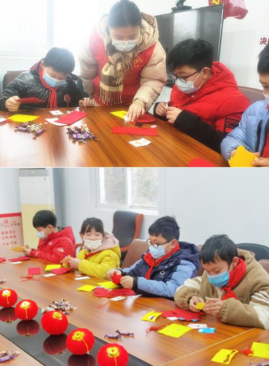 活動(dòng)進(jìn)入到了第四環(huán)節(jié),DIY手工花燈掛件送祝福。志愿者又拿出了十幾包手工材料,向孩子們演示如何做燈籠和掛件,在孩子的相互幫助、志愿者的耐心指導(dǎo)下,一個(gè)個(gè)紅彤彤的的燈籠和掛件呈現(xiàn)在了大家眼前,給節(jié)日增添了很多氣氛。