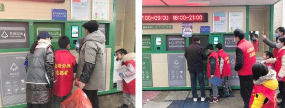 紙上得來終覺淺,絕知此事要躬行,課程結(jié)束后,由家長(zhǎng)帶領(lǐng)自己的孩子進(jìn)行廂房前值守,小志愿者們身穿志愿者紅馬甲,向投放垃圾的居民們發(fā)放了垃圾分類的宣傳材料,并引導(dǎo)居民養(yǎng)成良好的定時(shí)投放習(xí)慣,在廂房開放時(shí)間將分類好的垃圾投入相應(yīng)的桶內(nèi),居民都非常配合孩子們,也對(duì)他們的行為給予鼓勵(lì)和贊揚(yáng)。得到了爺爺奶奶叔叔阿姨們的肯定和認(rèn)可,孩子們也更加積極主動(dòng)地上前和居民進(jìn)行交流。