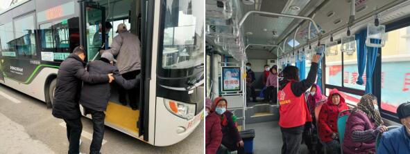 當(dāng)天,志愿者引導(dǎo)老年人登上公交,前往土橋衛(wèi)生院。接種過程中,志愿者全程陪同,為他們登記信息、答疑解惑、留觀反應(yīng),時(shí)刻注意著他們的狀態(tài)和身體情況,并將老人們順利送回家中。