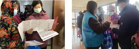 得知義診期間很多居民排隊時間都較長,社區(qū)組織志愿者為排隊候診的群眾講解老年疾病預防要點方法,介紹了解健康養(yǎng)生知識的途徑,除了圖文并茂的手冊閱讀能給大家生動形象的科普,看手機、新聞、資訊、報紙等也能讓居民獲取健康信息,提高民眾健康素養(yǎng)。