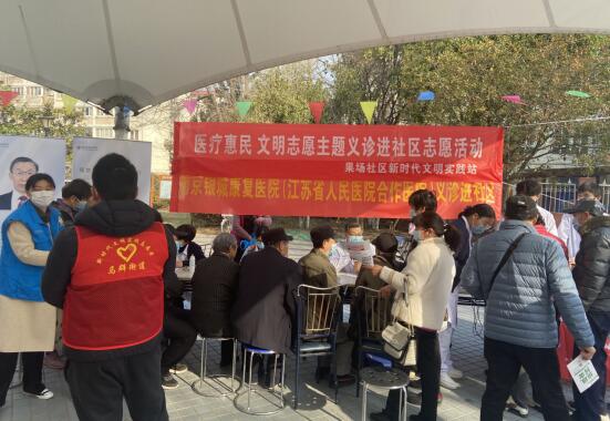 2022年3月4日上午,南京市棲霞區(qū)馬群街道果場(chǎng)社區(qū)黨總支依托社區(qū)新時(shí)代文明實(shí)踐站,在轄區(qū)天悅花園小區(qū)廣場(chǎng),與共建單位南京銀城康復(fù)醫(yī)院共建開(kāi)展了一場(chǎng)“醫(yī)療惠民 文明志愿”主題的義診進(jìn)社區(qū)志愿服務(wù)活動(dòng)。