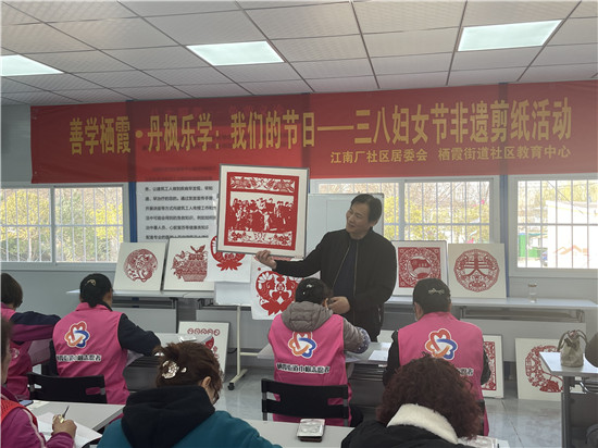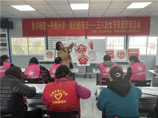 南京市棲霞區(qū)棲霞街道江南廠社區(qū)黨支部結(jié)合黨員冬訓(xùn)工作,豐富轄區(qū)婦女的業(yè)余生活,更好地展現(xiàn)女性的風(fēng)采,引導(dǎo)廣大婦女聽黨話、跟黨走,3月7日下午在社區(qū)建設(shè)者之家與棲霞教育中心聯(lián)合組織開展了“傳剪紙藝術(shù),展巾幗風(fēng)采”剪紙活動。