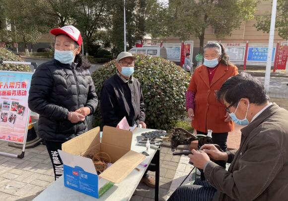 “這雙鞋穿了十多年了,質(zhì)量還挺好的,我女兒給我買的”,在公益修鞋攤位前,一位老人拿著剛修好鞋底的運(yùn)動(dòng)鞋,跟志愿者說道。志愿者張玉發(fā)將一雙雙開口的皮鞋、運(yùn)動(dòng)鞋在機(jī)器上銼、磨,然后粘、縫、釘,動(dòng)作行云流水,舊鞋經(jīng)過他嫻熟地修補(bǔ)后煥然一新。許多老人都說,自己年紀(jì)大了行動(dòng)不便,外面也很難找到修鞋師傅,社區(qū)舉辦這樣的活動(dòng)非常貼心。