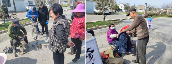 考慮到一些居民的需求,退役軍人志愿者在廣場上為大家提供愛心理發(fā)、裁剪衣服、磨剪子磨刀等各項服務(wù)。原本生銹的菜刀重新鋒利锃亮,破損的衣服也被縫上細密結(jié)實的針腳……一項項貼心服務(wù)切實為居民送去了方便,也促進了軍民共建。