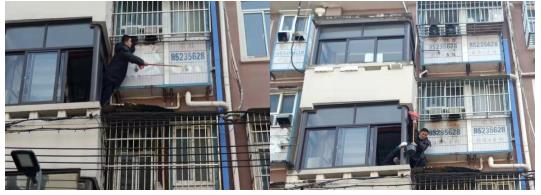 由于此次清理工作存在難度,為將墻體上的廣告徹底清除,城管隊(duì)員聯(lián)合城市治理公眾委員研究后,決定挨家挨戶上門溝通,借助居民家的陽(yáng)臺(tái),對(duì)外墻上的廣告進(jìn)行清理。居民們聽(tīng)聞紛紛打開(kāi)方便之門,積極配合隊(duì)員開(kāi)展清理工作。