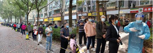 登記信息、協(xié)調(diào)現(xiàn)場秩序、安排人員入場檢測……在核酸檢測現(xiàn)場,工作人員們穿梭于長長的隊伍中,進行著一系列緊張有序地工作。居民們也很配合此次核酸檢測各項工作,自覺按照一米線排隊,保持一定的距離。一次次重復(fù)的話語,一次次相同的工作,他們不怕辛苦,一心堅守,將檢測關(guān)口前移、服務(wù)前移,體現(xiàn)了疫情防控工作人員的責任與擔當。