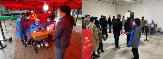 3月17日早上七點半,核酸檢測正式開始,網(wǎng)格員們在核酸采樣各個點位上,維護(hù)現(xiàn)場秩序,用小喇叭一遍遍重復(fù)重要事項,要求居民務(wù)必保持一米距離,保護(hù)自己的安全??紤]到下雨,網(wǎng)格員們將場地搬到了室內(nèi),給群眾提供便利,以免他們淋雨受涼。