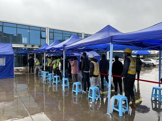 “這么快就可以了嗎”在紅楓片區(qū)保障房工地進(jìn)行全員核酸檢測(cè)的建筑工人都有這樣的感受。3月21日,為做好棲霞街道第二輪全員核酸檢測(cè),南京市棲霞街道紅梅社區(qū)黨總支將“抗疫先鋒”行動(dòng)支部設(shè)立在紅楓保障房建筑工地上,通過(guò)設(shè)置黨員先鋒崗、黨員責(zé)任區(qū),20余名黨員亮身份、當(dāng)先鋒、做表率,充分發(fā)揮基層黨組織戰(zhàn)斗堡壘作用和黨員先鋒模范作用,以嚴(yán)實(shí)標(biāo)準(zhǔn)筑牢全員核酸檢測(cè)的“紅色堡壘”。