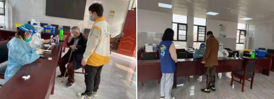 西城村在聯(lián)系好醫(yī)護(hù)人員、安排好場(chǎng)地后,網(wǎng)格員在微信群中通知村民們核酸檢測(cè)的時(shí)間、地點(diǎn),要求大家?guī)Ш蒙矸葑C或準(zhǔn)備好身份碼前往采樣點(diǎn),戴好口罩,保持一米距離。巾幗志愿者、計(jì)生協(xié)志愿者和青年志愿者攜手,助力核酸檢測(cè),為村民測(cè)量體溫,安排他們有序排隊(duì),遇到村民有疑問(wèn)的,為他們答疑解惑??吹揭恍├先送饶_不便,網(wǎng)格員和志愿者也會(huì)上前攙扶,為他們提供力所能及的幫助。