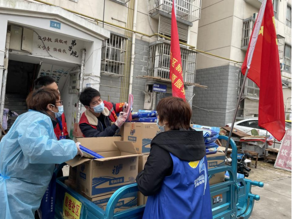 當(dāng)前國(guó)內(nèi)疫情防控具有復(fù)雜性、艱巨性、反復(fù)性的特點(diǎn),對(duì)待疫情封控區(qū)依然要堅(jiān)持從嚴(yán)抓實(shí)的態(tài)度,貫徹落實(shí)防控政策。為了在控制好疫情的同時(shí),保障好封控區(qū)居民的正常生活,南京市江寧區(qū)秣陵街道殷巷社區(qū)的志愿者上門發(fā)放生活物資,幫助居民共同度過難關(guān)。