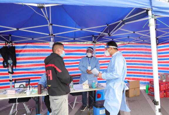 而現(xiàn)在,熊濤駐守在湖熟高速收費站,負責上海行程車輛的轉(zhuǎn)運工作,安排人員引導接送,確保司機全程不下車,貨運工作完成后立即送往高速入口。熊濤說:“從28號抽調(diào)到現(xiàn)在,經(jīng)歷過白天穿襯衫晚上穿羽絨服羽絨褲的各種天氣,特別謝謝我的老婆給我送衣服,給我加油打氣。”戴麗娟則是在湖熟社區(qū)負責著核酸檢測和人員流調(diào)工作,再一次穿上熟悉的防護服,戴麗娟心中的責任感和使命感油然而生,“哪里有需要我就站到哪里去,群眾的健康安全就是我工作的目標。”盡管兩人已經(jīng)忙到?jīng)]有時間照顧兩個女兒,仍一心撲在社區(qū)疫情防控工作上,“只有照顧好了社區(qū)這個大家庭,我們每個小家才能快一點回到原來的樣子。”