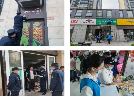 與各社區(qū)、市場局、環(huán)??频炔块T,以及城市治理公眾委員、志愿者通力協(xié)作,構(gòu)建齊抓共管的新局面。特別是違規(guī)小廣告清理、門店防疫檢查等工作,巡查范圍廣、任務(wù)量繁雜、易出現(xiàn)反復(fù)問題。城市治理志愿者的積極加入有效緩解了網(wǎng)格隊(duì)員的高強(qiáng)度工作壓力,使城市角角落落的違規(guī)小廣告得到及時發(fā)現(xiàn)、及時清理,使防疫巡查提速增效。
