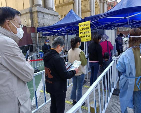 走進湖濱社區(qū)核酸檢測采樣點,工作人員們身穿藍色防護服,正在專注地用手機對準居民們的身份證和身份碼現(xiàn)場進行信息核對,有些老年群體用身份證驗證身份速度慢,工作人員不厭其煩地教他們具體的操作。同時,為保障轄區(qū)內(nèi)60周歲及以上老年人群疫苗接種“應種盡種”,在核酸檢測出口處,社區(qū)志愿者們?yōu)槔夏耆藗儼l(fā)放新冠疫苗接種宣傳單,引導動員老人們積極接種,耐心講解疫苗接種的必要性和重要性,積極解答老人提出的問題,并在核酸檢測點設立60周歲以上人員登記處。