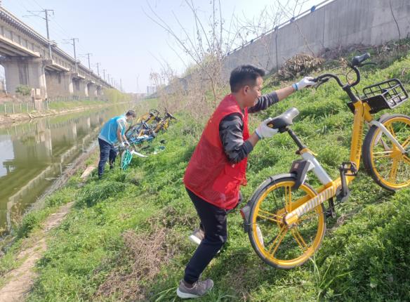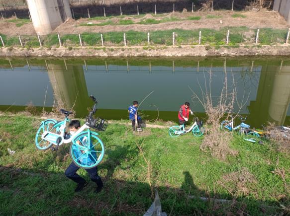 活動(dòng)現(xiàn)場,志愿者們兵分兩組。一組負(fù)責(zé)清撿河堤沿線垃圾,他們手持夾鉗、垃圾袋,將草叢內(nèi)的泡沫盒、飲料瓶、包裝袋、白色垃圾等一一“收入囊中”;另一組則負(fù)責(zé)清理河岸堆放的共享單車,他們通力協(xié)作,集中清理共享單車20余輛。一個(gè)多小時(shí)的勞動(dòng)過程中,志愿者們不怕臟、不怕累,樂在其中,充分展示了甘于奉獻(xiàn)、積極向上的精神風(fēng)貌。一番努力下,堤岸環(huán)境變得更加干凈清爽,河岸面貌煥然一新。