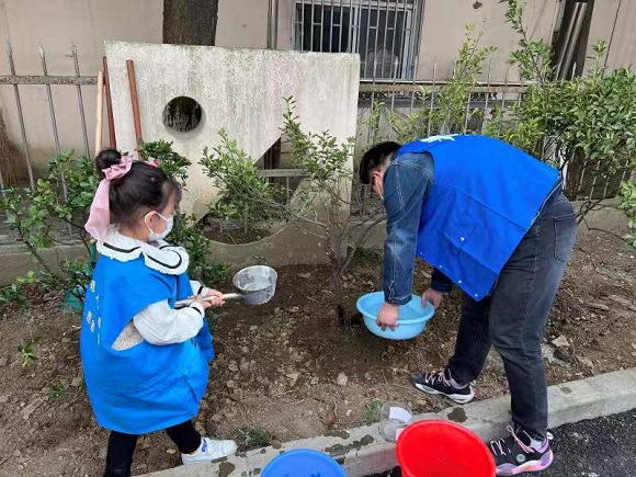 小朋友們和家長一同來到堯安新村南院一處適合種植樹苗的空地上,里面擺好了提前準(zhǔn)備好的鐵鍬等工具。在社區(qū)工作人員的帶領(lǐng)下,小朋友們和家長一起從挖坑到把樹苗種下去。期間有的小朋友遇到了一些困難,在現(xiàn)場工作人員和志愿者的幫助下,很快就把6棵樹全部種好。隨后,小朋友們又和家長一同對親手種植的樹木進(jìn)行了灌溉。最后,大家在種植的樹苗前合影留念。