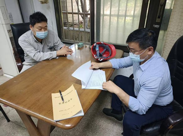 在江南小野田水泥有限公司,張主任和印書記翻看了企業(yè)臺(tái)賬,查閱了企業(yè)安全生產(chǎn)主體責(zé)任落實(shí)、安全生產(chǎn)管理制度執(zhí)行、安全風(fēng)險(xiǎn)管控等相關(guān)內(nèi)容,并進(jìn)行了詳細(xì)記錄。