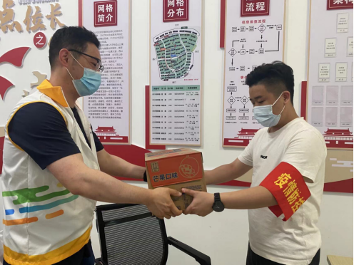 下午14:00,社區(qū)團(tuán)總支組織轄區(qū)團(tuán)員及青年志愿者赴社區(qū)防疫一線慰問疫情防控工作人員。團(tuán)員及志愿者們帶著一箱箱礦泉水等物資,為他們送去夏日的一份清涼,并主動(dòng)幫助他們從事力所能及的疫情防控工作內(nèi)容,幫他們分擔(dān)、減負(fù)。“太感謝這些志愿者們了,雖然天氣炎熱,但是疫情防控絕對(duì)不能松懈。”一線人員說道。