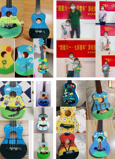 繪稿、上色、安裝,小朋友們和家長分工協(xié)作,一件件精美的尤克里里制作完成。帥氣的奧特曼、蔚藍(lán)的天空、靜謐的月夜、生機(jī)勃勃的田園、抽象派濃烈的色彩沖擊、童趣稚嫩的小花,童趣鮮活的創(chuàng)作展現(xiàn)小朋友們天馬行空、鬼怪精靈的內(nèi)心,享受快樂的親子時(shí)光是兒童節(jié)最好的禮物。