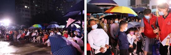 晚上七點(diǎn),一場《美麗中國》的舞蹈拉開了活動的帷幕,多彩的民族服飾、精彩的歌聲與舞步,不僅讓本就在此等候的居民們沉浸在其中,更吸引了許多散步的男女老少駐足觀看。隨后,女聲獨(dú)唱、男聲四重唱、模特表演、朗誦情景劇、武術(shù)表演、混聲合唱……形式多樣的節(jié)目輪番上演,即使天上飄起小雨,也擋不住大家的熱情。