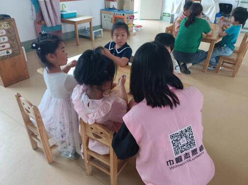 端午將近,掛蛋袋是一種流行于江南地區(qū)的民俗傳統(tǒng),有消災解難、逢兇化吉、護佑孩子健康平安的寓意。巾幗志愿者為孩子們準備了蛋袋編織的手工材料,教授編織蛋袋的方法。志愿者仔細的講解編織步驟,孩子們認真聆聽學習,五彩的編織繩經(jīng)過小朋友們的不斷嘗試后,最終成為了一個擁有美好寓意的蛋袋。