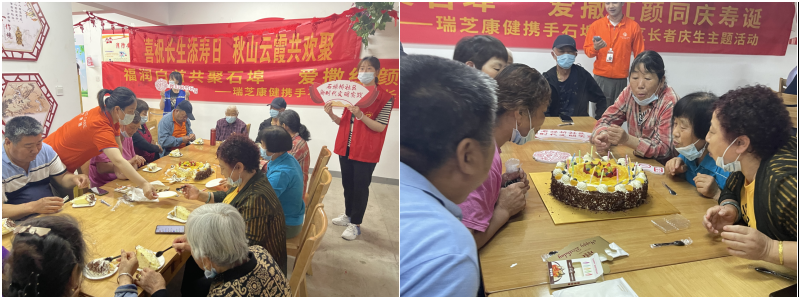 為了弘揚(yáng)和傳承中華民族傳統(tǒng)文化尊老愛老的傳統(tǒng)美德,提升社區(qū)凝聚力、向心力,2022年5月30日,南京市棲霞區(qū)棲霞街道石埠橋村社區(qū)新時代文明實踐站聯(lián)合瑞芝康健蘭馨養(yǎng)老服務(wù)中心,開展以“福潤白首共聚石埠,愛撒紅顏同慶壽誕”為主題“文明有‘寧’活動,為轄區(qū)長者慶生。