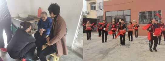 為了能讓社區(qū)高齡失獨老人或行動不便的高齡老人也打開心扉、感受到生活的喜悅,青龍社區(qū)的10位老人志愿者走進他院子,用腰鼓傳遞溫暖和快樂。彭奶奶95歲高齡,由于身體原因腿腳不太利索,很久很久沒有走出家門,志愿者謝阿姨握住彭奶奶的手,真誠祝福彭奶奶身體健康長命百歲。彭奶奶激動地表示,“家里很久沒有這么開心了!”