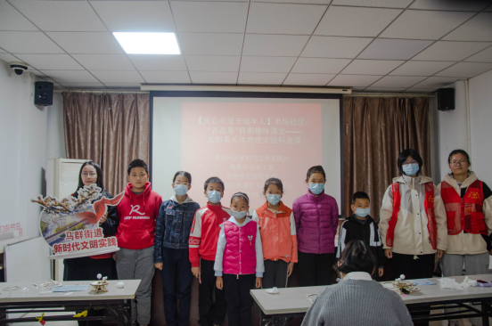 11月12日,南京市棲霞區(qū)馬群街道新時代文明實踐所、果場社區(qū)新時代文明實踐站站所聯(lián)動,在社區(qū)三樓活動室,組織社區(qū)“齊益果”積分制志愿者、社區(qū)居民學校志愿服務(wù)力量、南京師范大學向心力志愿者及社區(qū)未成年人,開展了一場“齊益果”假期趣味課堂——太陽系天體物理實驗科普課。