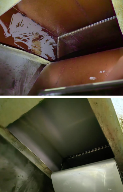 本次整治消防隱患行動后,煙道恢復了原本的內壁鐵皮色,不留有塊狀頑固的油漬,灶臺的表面無油污且光亮整潔,風機葉輪的表面可以看見底漆,電機底部沒有沉淀的油漬,管道外部沒有油漬和頑固的油垢。