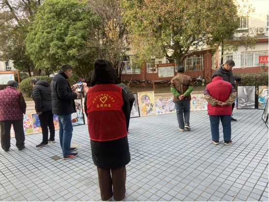 為不斷豐富社區(qū)居民文化生活內(nèi)涵,弘揚(yáng)熱愛生活發(fā)現(xiàn)美好的社區(qū)文化,2022年12月6日起,南京市棲霞區(qū)馬群街道新時代文明實(shí)踐所與果場社區(qū)新時代文明實(shí)踐站進(jìn)行站所聯(lián)動,依托社區(qū)新時代文明實(shí)踐站文化服務(wù)平臺,組織“齊益果”積分制志愿者、黨員、居民在轄區(qū)天悅花園、馬群公寓小區(qū)、陳家院城中村內(nèi)開展“社區(qū)繪畫展覽”志愿活動。