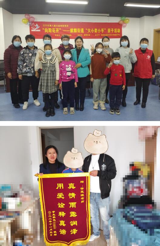 南京幸福家社會工作服務(wù)中心在江寧區(qū)民政局第八屆公益創(chuàng)投項目中承接的“向陽花開”項目即將收官。 2022年12月10日下午,由江寧區(qū)民政局主辦、麒麟街道民政辦和婦聯(lián)協(xié)辦、南京幸福家社會工作服務(wù)中心承辦,在麒麟街道文體中心開展了一場“大手牽小手”結(jié)項親子活動,旨在通過本次活動對近半年來項目的開展情況進(jìn)行回顧、總結(jié),特設(shè)現(xiàn)場答疑,進(jìn)一步解決家庭教育問題,同時加強(qiáng)親子間的溝通交流,增進(jìn)親子關(guān)系,也為小朋友們提供一個自我展示的平臺。