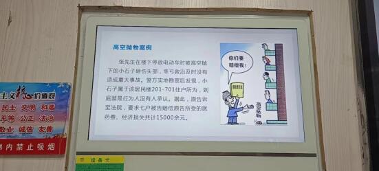 為減少轄區(qū)內(nèi)高空拋物不良現(xiàn)象,石埠橋社區(qū)新時代文明實踐站還通過小區(qū)戶外大屏、120個樓棟小電子屏,多維度宣傳高空拋物的危害。下一步,社區(qū)將繼續(xù)加大宣傳高空拋物違法行為、引導(dǎo)廣大居民積極行動抵制不文明行為,共同營造安全舒適的社區(qū)環(huán)境。(石埠橋社區(qū) 莫素青)