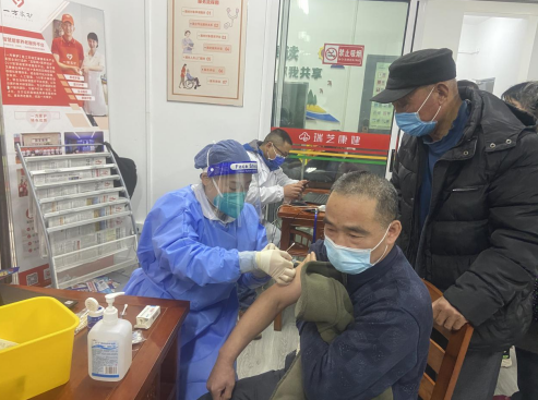 12月16日下午,南京市棲霞區(qū)棲霞街道石埠橋社區(qū)開(kāi)展“送“‘苗’上門(mén),老人接種更安心”便民服務(wù)活動(dòng),由棲霞衛(wèi)生院的醫(yī)護(hù)人員到社區(qū)為老年進(jìn)行疫苗接種。