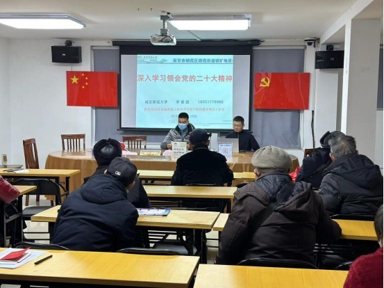 為深入學習貫徹黨的二十大精神,及時將黨的二十大精神傳達到社區(qū)干部群眾,12月16日,南京市棲霞區(qū)棲霞街道全民閱讀辦聯(lián)合銀礦地質(zhì)社區(qū)黨總支邀請南京師范大學馬克思主義學院黨務書記李前進為干部群眾宣講二十大精神。